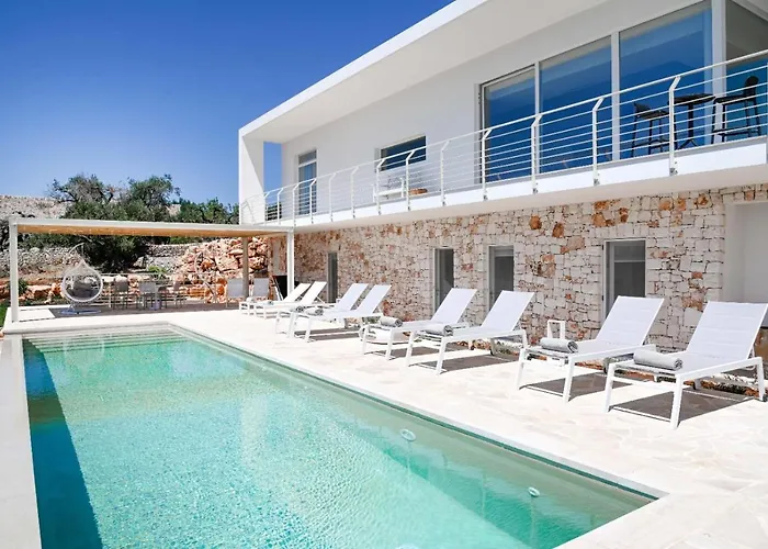 Villa Panitria ligt op afstand van 3 km tot Il Trullo Sovrano en nodigt gasten uit om te ontspannen op een terras.